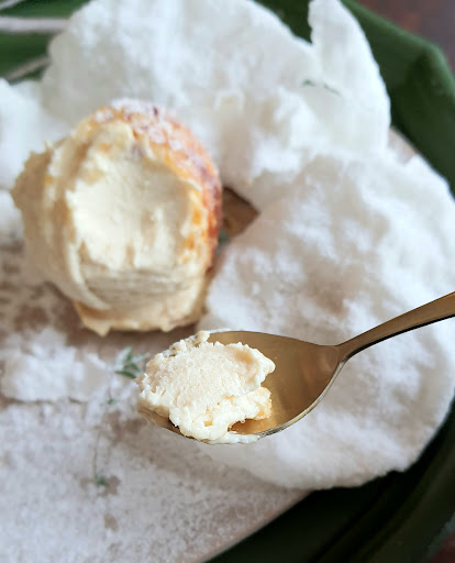 Interior design and decoration of the restaurant are likewise unconventional and artistic: Modern chic with natural elements, e.g. dried flowers, wood, rock and shells. Since food is prepared inside the same room as the dining hall, the smell of cooking or roasting food constantly permeates the room, hinting at what's currently going on in the kitchen section.