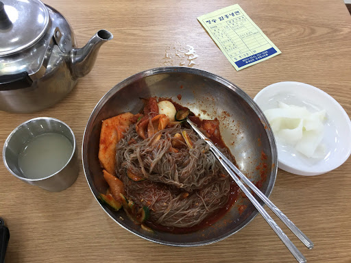 Read moreThe greatest Naengmyeon I have had in my life. The mandu are also huge and I was fighting for my life eating them all. While I was battling, the waitress very kindly brought me a free potato pancake which was very delicious but also a lot of food haha. I was very grateful and full after, and as I was the last person in the store the waitress patiently waited for me to finish absorbing, and even offered me an umbrella when I left. Despite the language barrier, we were able to communicate using Papago LOL. It was very wholesome. I love...