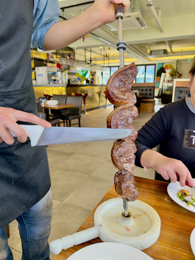 Read moreThe atmosphere is pleasant, the service is good and kind , the secondary dishes the rice was terrible even not asian style also not latin style , the beans and the meat in a sauce was the most delicious on this place , the salads bar have maybe 4 options lettuce, cabbage and some pickled i miss tomato onion and coriander perfect for meat in latin gastronomy and also where was bread they don't give bread , the meat buffet in my personal taste I'm latina and my husband is korean we didn't like it the meat all had the same seasoning incluid chicken ,flavor extremely strong practically I could only eat two complete pieces and I only tried a bit the others pieces and i didn't could eat more, everything tasted like lamb or animal corduroy very intense smeel and taste also another Brazilian restaurant give delicious coffe , in here they don't give , pineapple on the end was fine it worked a bit to delete the strong meat taste , if you like strong meat taste it will be good , if you don't like it don't ...