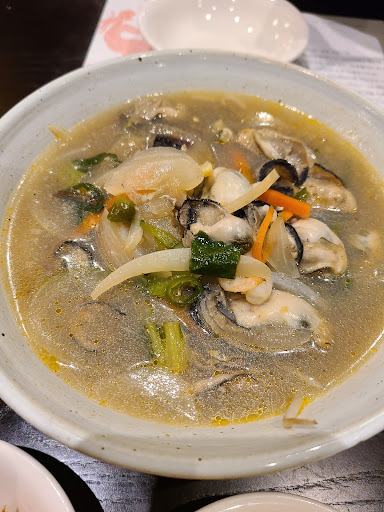 미리 주문한 덕분에 음식은 빨리 나왔습니다. 이름만 보고 고른거라 어떤음식일지 몰랐는데 굴짬뽕 느낌의 메뉴였네요. 내용물도 푸짐하고 깔끔합니다. 근데 중식 치고 너무 깔끔했습니다. 좋게 말하면 깔끔 나쁘게 말하면 허전한 맛이랄까요. 그만큼 조미료에 의지하지 않은 본연의 맛이라고도 할 수 있겠는데..보통 중식에서 기대하는건 그런게 아니잖아요. 깔끔한 중식이라는것도 어느정도 느끼함과 부대낌을 줄였을때 얘기지 밍숭하단 느낌이 들면 음..갸우뚱 거리면서도 분명히 부담되는 맛은 없어서 편하게 다 먹었습니다.