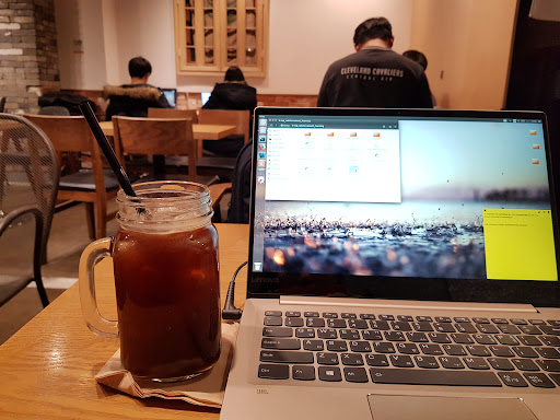 Very comfortable for doing work for several hours. The hot Americano was good and a big size. I LOVE the tiramisu! I was really surprised at the quality, and it is BIG. The staff are also friendly. The music is a bit loud for me, but that's just because I'm sensitive to that--it should be fine for...