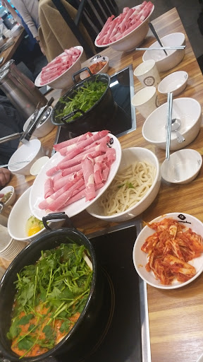 It definitely surpassed our expectations. We got the mushroom and watercress hot pot and it came with kalguksu and fried rice at the end. The broth was really tasty with garlic and pepper. The meat was very tasty, and the kalguksu was a really great way to end the hot pot portion of the meal. The broth had become even more flavorful after the meat cooked. The mandu was also tender and flavorful....