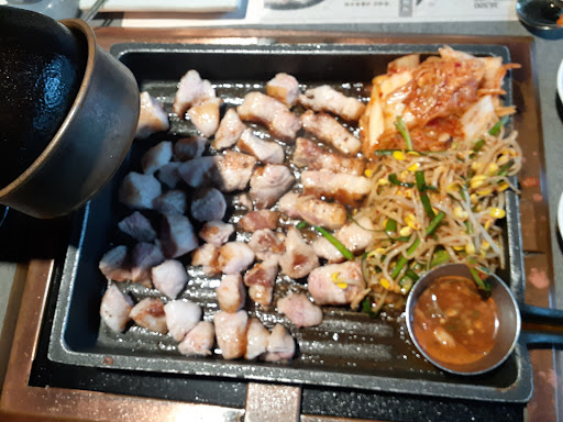 The food was good... Worst staff of the year. Not just one but three of the five were horrible. The manager was great, though... we've tried to order and ask for several times while they were attending our table, simply ignored us. Asked for more complimentary veggies- we called them, and they would just keep pretending not hear us. Later found the button and they would come over and forget to bring whatever we order/ask. Asked for garlic and no garlic. So i went over and got the garlic myself- and one of the staff member finally came to me and asked if i needed anything, in a rude manner- and kept asking if i needed anything and if i need something he tells me to ask, but our table has been asking all day... anywho for this price and hospitality, it's a joke. Seems like the staff in the food industry, really doesn't want to work๐ค Would have given it a 1 star, but the manager was very friendly and great at cooking ์ผ๊ฒน์ด. My heart fluttered~ โค Well other than that a...