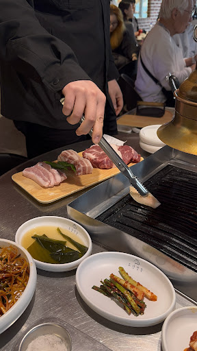 We went straight for the Jeju pork and seriously, the tenderness was unreal. Like, melt-in-your-mouth soft, no exaggeration. The staff grilled it perfectly right at our table, and the flavor was just incredible. You can taste the quality, for sure. And don't sleep on the banchan! They brought out a whole spread of little side dishes, and everything was so fresh and flavorful. That kimchi alongside the rich, tender pork? Chef's kiss. Honestly couldn't stop refilling the little plates.