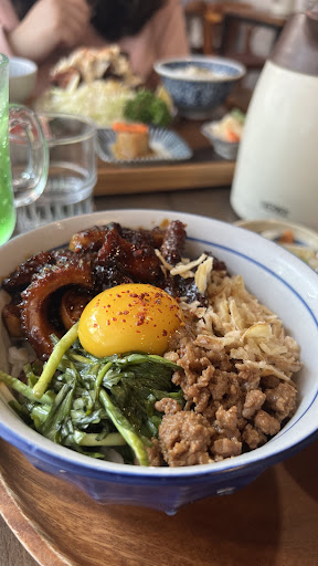 Always walked by here and finally stopped by for a visit. First, it is super easy to check in, they have an iPad and you put your number in and will tell you how long the queue and wait time is. They have ice cold water, fans, stickers and a menu to look at while you wait and there was plenty of seating and great for pictures. The staff was very friendly upon entering and the decor has a very nostalgic feel to it. We ordered the natto bowl and the avocado fish egg pasta. We also ordered a tamago sandwich and the melon soda. All were really good and the little sides were addictive. I am excited to visit again. Great for a date and...