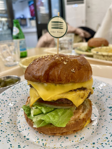 ย ย ย Read moreJuicy delicious burgers almost if if not better than the typical ones in America. At least LA where I'm from. Not many places can beat elderberger. The Patty/meat was very well grilled. The sauces were perfect. The vegetables are perfect. Everything was perfect. We also had the fried mushrooms that was exceptionally good. Very Korean style, deep fry method and batter, amazing. It was well seasoned and crispy. The mushroom has a very unique texture. The service here is great. There's a lot of seating depending on what time you come. The prices are a little high but that's what you get for high quality food, But it was still a little tad bit pricey. Wish it was a little bit better pricing.. It's located right in the seoul forest, in the alley within the alley You have to make a...