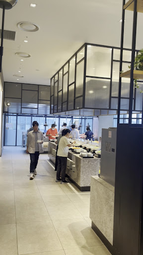 Dinner: Even though the dishes do not look many, all necesaary dishes for dinner buffet are there and tasty. Especially noddle station and barbecue station are popular. Grilled beef and pork are crispy outside and juicy inside. Unlimited sparking wine and beer is also beloved by guests. Prices are very moderate (and even if the guest is not Marriott member, there is speical discount voucher from the front) Tables are spacious and staffs are very kind.