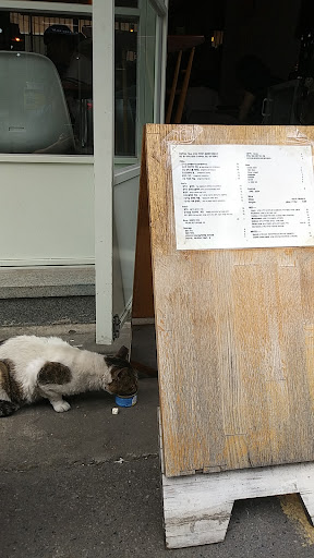 Straight out of a high school art studio this beautifully fragile space is full of lies. SEVEN tables adequately fill the kiln-like kitchen and dining room as a scraggly feline is likely to lure the pekish oggler into it's cozy nook. Non intrusive staff leave you to it. Food is flavour...
