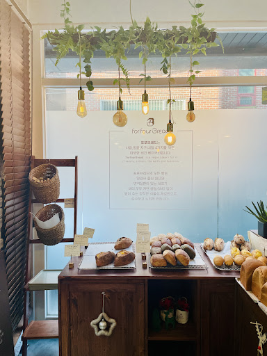 For four bread is a fully vegan bakery! They have several bread options which look phenomenal. The bread ranged from Sourdough and Ciabatta (onion, mugwort, olive) and also some Baguette (chocolate, plain and pepper) On the sweet side they have several cakes displayed: whole mini pond cake (pumpkin, mugwort chestnut) - round cheesecake I tried: Chocolate Cookie 3.3 (other options: coffee, peanut and green tea) Mugwort red bean Madeleine (other options: Chocolate, nuts) Located in Mangwon (close to Hapjeong-dong Station and Line 2)