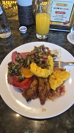 Read more2024년 7월 6일 토요일에 코트야드 메리어트 서울 보타닉 파크 가든키친 뷔페 4명 방문해서 점심식사 하고 왔습니다. 주차는 코트야드 메리어트 호텔 지하주차장에 무료로 가능합니다. 주말이라 손님이 많을줄 알았는데 별로 많지 않아서 한적하고, 쾌적하게 식사가 가능했어요. 원래 점심보다는 저녁 식사 타임에 손님들이 더 많다고 하네요. 저희가 방문한 날은 운좋게도 1인당 큰 전복구이 1개씩을 서비스로 기본 제공해서 아주 맛있게 먹었어요. 고기류 중에서는 LA갈비가 가장 맛있었고, 소고기 스테이크도 바로바로 구워줘서 먹을만 했습니다. 양고기 구이는 냄새가 나고 그렇지는 않았지만 고기가 엄청 부드럽지는 않아서 그냥 보통이었어요. 그 외 모든 음식들이 다 품질이 좋고 다 맛은 괜찮았어요. 여기를 3~4번 와봤지만 가격은 조금씩 올랐고, 음식 종류는 아주 많지는 않아요. 대신 각각의 음식이 재료가 좋고, 맛이 괜찮습니다. 이번에는 후식중에 아이스크림이 정말 맜있어요. 폴바셋의 우유아이스크림과 맛이 거의 동일한 수준이었네요. 당근 쥬스도 설탕을 좀 타긴 한거 같은데 거의 100% 당근즙이라 아주 맛있었어요. 주말 중식/석식 가격은 1인당 10만원입니다. 일부러 찾아갈 정도의 호텔 부페는 아니고, 근처에 놀러왔거나, 호텔 투숙하는...