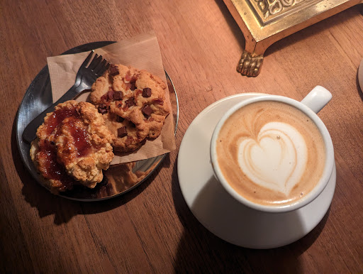 They have the best oat milk flat white in the area! It's super smooth and flavorful. I also really enjoyed the Peanut Butter Cookie and the Strawberry Jam Scone. The Bacon Chocolate Cookie was just okay.