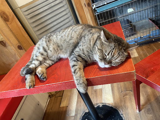 Read moreI came here coincidentally on a rainy day and these cats were so friendly! They would move around freely and come around for treats. It was overall so nice to see cats just doing their own thing and letting people pet them. Two of them sat on my lap and I didn't want to leave. It's a great cafe for introverts and cat lovers. I personally enjoyed it very much, theres a bit of a smell but it wasn't as strong as some reviews said and it wasn't bothersome. The cats are well fed and taken care of they seem very comfortable and the owner is so very friendly. Some of the cats seemed to feel uncomfortable getting pictures taken of so I would really recommend keeping the cats boundaries. Great for tourists in Hongdae. Genuinely enjoyed it and would love to come again. (they only have drinks which wasn't a problem to me and the cats do have allergies and maybe medical conditions but they seem very well taken care of and the owner knows what he's doing and treats the cats very lovingly) (I also think the cats were rescued but they aren't in any danger from what I saw, after warming up to them in ways that they're comfortable the cats slowly trust you and if you're lucky you might be able to pet their belly.) I truly recommend going, the price isn't too expensive either. They were so cute and the owner came around and actually explained some of the cats roles in the little community they had and what their likes and dislikes are. As long as you respect the cats and the place enjoying this hidden gem...