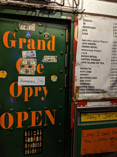 This country bar is foreigners only, if the owner sells to Koreans they pay huge fines and get a license suspension. This place has a lot of history. It's a country bar that served military members when the Yongsan base was the largest US Army garrison. Now it is like a museum monument to... off-the-books history. This is a bar where some country music and country line dancing happens. Soldiers would come here, the last legit bar before the more tawdry clubs just up the hill. Here you can find lots of old music and military memorabilia from USO tours, autographed pictures, and graffiti. The tradition of signing a dollar and taping it up to commemorate your visit is...