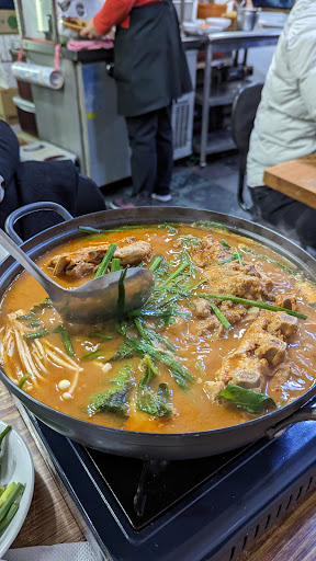 ย ย ย Read moreAuthentic place with a great service, tasty Korean food and truly local atmosphere. We came here for a late-night food, the place was busy at half past midnight with late workers coming here for dinner. The menu is small, but to the point: hot pot (delicious soup with pork ribs), grilled meat, rice dishes, etc. The hot pot comes with some sauces, glass noodles, dough slices on the side and unlimited refill of kimchi and pickled radish. When we returned to hotel we learned the hotel staff know this place and often go...