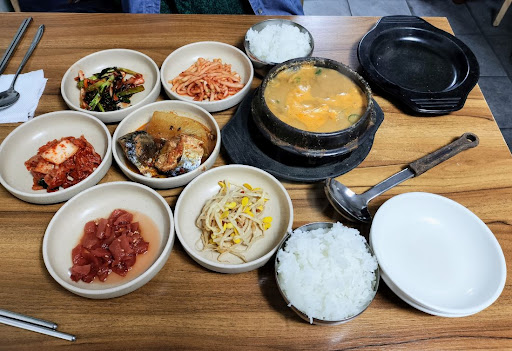This local attraction is famous for Korean fermented bean soup called ์ฒญ๊ตญ์ฅ, Chungkukjang. Chungkukjang is fermented and smelly dish, but it is a healthy dish with a mesmerizing taste that you cannot stop eating. The warm fermented beans, potent kick buds to awaken your senses, and cooked dengjang are one of the top notch Korean dish. They offer squid and spicy pork as well. It comes in rice in the bucket and they will scoop the rice to put water in it to make it into nooreungji.