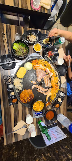 Read more개인적으로는 별 3개이나, 다른 분들은 별 4개 이상 줄 수 있을 듯. 여긴 고기집 보다는 일종의 퓨전 식당임. 고기 퀄 좋음. 국내산. 양이 좀 적음 160그램. 먹으면 확실히 국내산 한돈 맛이 남. 육회 퀄 좋음. 맛있음. 떡볶이 맛있음. 윙은 평범한 인스턴트 윙. 해시 브라운....기름 쩐내 쩜...근데 이게...당일 쩐게 아니라, 전날 쩐듯한 수준....개심각. 얘가 제일 심각.. 파스타 맛있음. (예상보다 맛있어서 놀람.) 김치전 맛있음.(평범하게 맛있는) 초밥은 보통. 콩나물 무침 맛 없음. 김치는 평범. 타코야끼 반죽이 살짝 덜 익은 듯 하지만, 맛있었어요. 고기 거의 다 먹으면 자동으로 나오는 국수는 좀 많이 달아요. 여기는 고기랑 술 집중 하시는 분들은 비추. 다양하게 먹는거 좋아하시는 분들은 좋아 하실수 있어요. 근데 여기는 고기에 대한건 좀 부족해요. 일단 마늘이 안나오고, 달라고 해야 줘요. 고기랑 마늘은 뗄 수 없는데. 깻잎이 없는 것도 좀 아쉬워요. 다양한것도 좋지만, 일단 고기집 이라면, 고기를 맛있게 먹을 수 있도록, 고기 중심 찬들이 좀 정리 되면 좋겠네요. 찬 수가 많은데, 딱히 땡기는게 많지는 않고, 너무 어수선 해서 저는 재방문 안할 겁니다. 여기 안좋다는게 아니예요. 저한테 안 맞는거지, 다양하게 많이 드실 분들은 여기 좋아 하시는 분들 많을건데, 인스턴트 탄수화물...