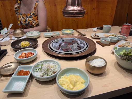 The star of the show—the samgyeopsal—is cooked to perfection, with juicy, tender slices of pork belly that melt in your mouth. But what truly elevates the meal here are the banchan (side dishes). The sheer variety is impressive, offering everything from kimchi and pickled radish to unique seasonal offerings like marinated perilla leaves and fresh vegetable wraps. Each dish feels thoughtfully prepared, complementing the grilled meat beautifully.