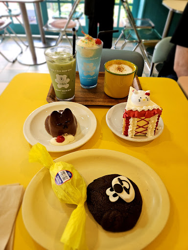 ย ย ย Read moreCutest desserts served in the most colourful cafe! Love the interior and decor as well, very fitting to the youthful and bright energy of the building. The birthday cake we got is not too sweet too! Affordable prices, and they even have a receipt โPhoto Boothโ device beside the cashier that can take your picture and print it on a receipt paper! Went on a Friday afternoon and it was not crowded at all, many seating, with a 2nd floor and outdoor as well! They do sell candles for those who are celebrating their birthdays there, cakes come in slices or whole...