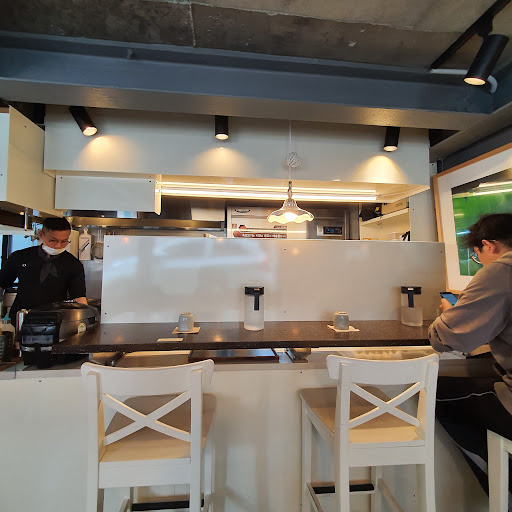 가게 내부는 오른편에는 테이블죄석이 4-5개 정도 있고, 왼편 주방쪽으로는 닷찌타입 좌석이 3개정도 있음. 날씨가 쾌청해선지 살짝 반지하라지만 유리창도 크고, 빛이 창 한가득 들어와 밝고, 새로 오픈해선지 깨끗했음. 콘반같은 뭔가 프라이빗한 느낌이 아닌, 좀 더 대중적이고 편안한 분위기임.