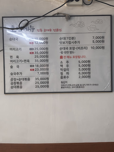 Sun-Dae Guk restaurant - old but tasty. if sensitive for clean and neat, not recommend. but if like humble and good Sun-Dae Guk, it's good restaurant. it's open at 6 am, so can eat Sun-Dae Guk early in the morning with soju. it's like grand mother's cook. there is not parking lot so better...