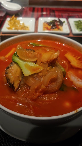 They absolutely do not spare any ingredients and gave what my money's worth. Servers were very attentive and courteous all the time. We had the special weekend dinner course and were so stuffed at the end of our meal. Side dishes they provided for free as snacks were absolutely delicious. I could just finish my meal with just those four side dishes and a bowl of fried rice without ordering anything else. From the weekend special course menu, you can freely chose 10 items. One shared appetizer, one individual dessert, one individual noodle or fried rice, and 7 shared main dishes. If you ask the server to equally divide main dishes or appetizer into an individual plate for your party, they will do it for you. The amount of food they give you is a lot and you can freely choose from many dishes on the menu, so if you want to try out something new without costing you too much, this is your chance. Even the Individual noodle dish had a lot of seafood and ingredients in them. I specially enjoyed seafood noodle soup though it was a bit on the sweet side. It seems expensive but I think they give you a lot with a...