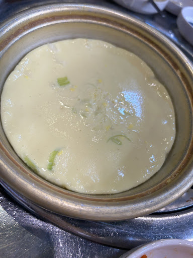 Meat was good but sadly service was terrible. Ordered 2 portions of meat and a steamed egg, meat came but they served rice instead of the egg. Informed them. Then they took away the rice but steamed egg still did not come even when we were finishing our meal. Asked them about it, turns out they forgot about it. Then they asked us to wait 5 mins for it, we agreed. However after 5 mins, it still did not come. We had already finished our meal and didn't want to wait further, wanted to pay the bill and leave. However, when we stood at the cashier wanting to pay, they just ignored us and it was plain that they insisted to serve the egg that we no longer wanted. When the egg finally came, it was of such a low standard as seen from the photo. Have you ever seen Korean Steamed Eggs this manner? It is usually fluffy but this is...