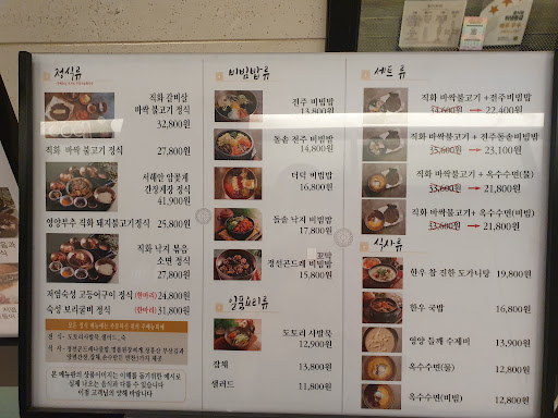 This is a Korean restaurant that serves traditional dishes like set menus (jeongsik), bibimbap, and crispy bulgogi. The food was delicious and well-prepared. However, since they use all-natural ingredients, people with food allergies should be extra cautious.