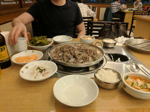 This place has been in the neighborhood a long time. It's been here since the 1990s and maybe longer. The Galbi is very good. Each floor has its own menu. One floor has gabi ttang a kind of stew. The next floor has barbecue ribs and the other floor has bulgogi. This makes the service quicker but makes it hard for groups to decide on one menu. Other than this the service is wonderful. There are abundant side dishes and the staff will offer you seasonal fruits or a drink on the house. The meal is a bit pricy but the environment is quiet and upscale compared to other barbecue places. Valet parking is available and complimentary...