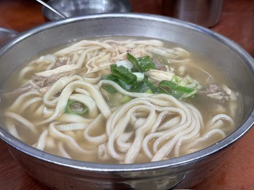 It's a hidden gem I found on a food tour. There are no signs outside the restaurant and windows are covered. I could have stood in front of the restaurant for hours without ever knowing this amazing place exists. The chicken noodles are amazing Grandma Style noodles. There is a spicy red sauce you can add to the noodles which is also delicious. You can get refills on the noodles for free in 1/2 and full portions but if you don't eat the 2nd portion of noodles then you will get charged for it. Bottom line: This is my favorite noodles place in Seoul (albeit it's a trek...