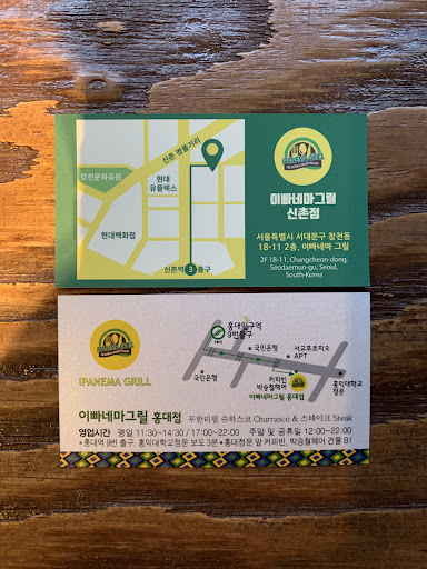 Se vocรช estiver de passagem aqui na Corรฉia e quiser matar saudades da culinรกria brasileira nรฃo deixe de dar uma passada aqui no Ipanema Grill. Com opรงรตes de rodรญzio ou pratos a la carte dependendo do seu apetite, com certeza irรก desfrutar de uma รณtima comida e coloque a famosa pimenta coreana apenas o quanto vocรช desejar!(rs) O atendimento รฉ excelente e conheรงa o anfitriรฃo Andee, muito gente boa, pra bater um papo super agradรกvel. O local fica prรณximo ao badalado bairro de Hongdae e de fรกcil acesso pelo metro. Nรณs passamos apenas 3 dias viajando e conhecendo um pouco de Seoul. Nรฃo resistimos e tivemos de voltar lรก pra apreciar novamente a comidinha brasileira antes de retornar. Ah e finalize com um cafezinho tradicional brasileiro! Com certeza passaremos novamente por lรก quando viermos novamente pra...
