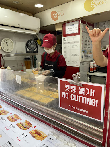I always loved Isaac Toast, and this is one good place for breakfast or to grab a bite when you head out from the Myeongdong station. What is a little disappointing about this branch is that it is too small there is basically no place to dine in, it only operates out of a window. Also the variety of the sandwiches are greatly reduced. I was already thinking of eating a shrimp one but to my disappointment it wasn't served there. Good is good but a lot of limitations due to the foot size of the restaurant. Food wise literally nothing to complain about, it was my first meal when I arrived in Seoul from the airport. The first place to serve food when I walked out of the station walking to the hotel. I was wishing for a place to take a breather and enjoy breakfast but in the end had to takeaway to the hotel, also not knowing I arrived before noon and don't even know if I had a room ready. And it was very troublesome because there were no bags as well so everything you ordered has to be taken away with bare hands. Quite a chore for a tourist especially when we have hands...