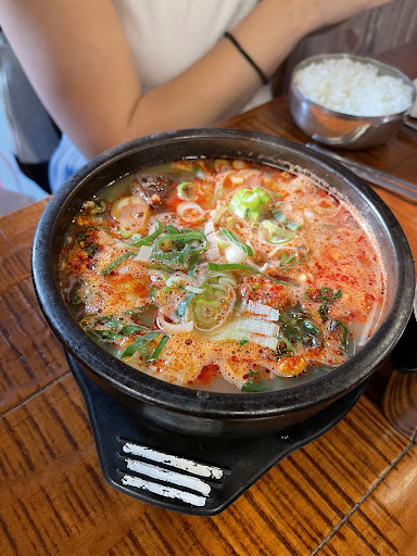 Quaint little place. Oppa of the place speaks English, but actually the menu consist of only main dish, spicy and non spicy beef soup. Friend who doesn't take beef, took potato pancake.