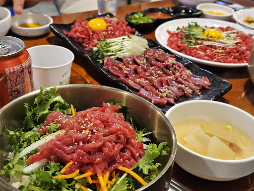 そこで、創業から30年以上の老舗『晋州ユッケ(진주육회)』という、韓国版ミシュランのブルーリボンサバーやレッドリボンを獲得してる超穴場専門店へ行ってきたので、ご案内します(レッツ〜♪)🙋♂️🙋♀️