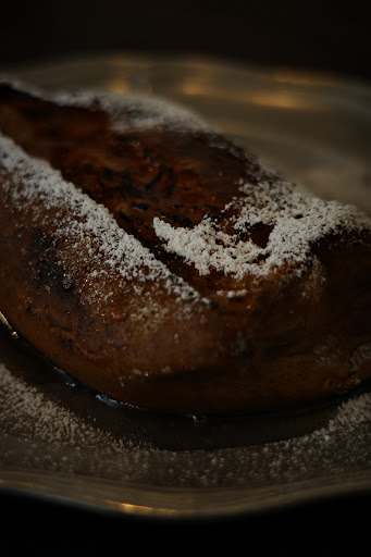 The toast had a brรปlรฉe-like crust, but it was just sticky, overly sweet, and a bit bitter. The inside was tender and soft. I didnโt see the point of adding Maldon salt to the plateโit didnโt help balance the flavors. I thought it was just me, but I overheard others saying they couldnโt finish it because it was too sweet.