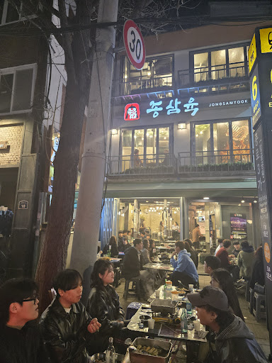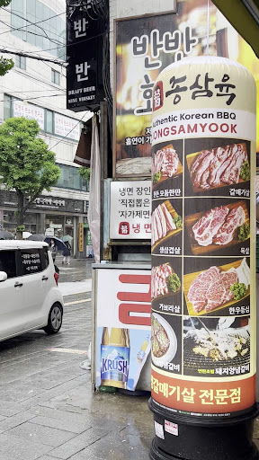 It was my first time sitting down and ordering in South Korea since I have just landed here last night. I was a bit nervous but the staff was welcoming and understood some English and I was able to enjoy my Korean barbecue experience. I was alone and there was a minimum of 2 orders of meat from the meat menu so I ordered skirt pork and beef spare rib and I ordered a bottle of beer and small cup of steamed rice. All the sides of pickled veggies, lettuce m, garlic and green spicy pepper and Napa cabbage and green onion kimchi were all ready by the time you sit on their table. It was a nice night out so I chose outside table. It was a great experience. My bill came back ~60k KRW. ...