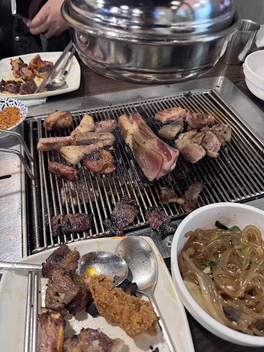 What I liked: Meat Selection: The variety and freshness of the meats were impressive. From thick, juicy pork belly cuts to marinated beef ribs, everything was flavorful and tender. Grilling Setup: The charcoal grill adds a smoky depth to the meat, enhancing the overall taste. The staff was attentive in helping manage the grill, ensuring the meats were cooked perfectly. Side Dishes: The japchae and kimchi stood out with their authentic flavors, making them perfect accompaniments to the rich grilled meats. Atmosphere: The layout and table setup make it easy to enjoy a communal dining experience, perfect for groups or families.