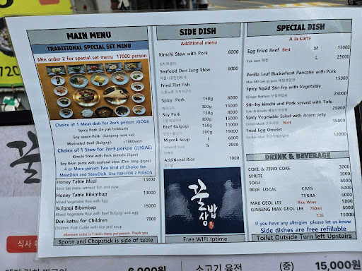Read moreImportant: NO foreign credit cards accepted (yet) so bring cash!! Had a fantastic early lunch here with special set menu for two persons: an extensive banchan variety: 16 different side dishes (all side dishes are refillable so you get a small portion of each item first to see what you like) and 3 "main course" items. Simple, homecooked dishes in the best way - not overly salted nor sweet, especially the soy sauce pork and fried fish which tastes like dishes my grandma used to cook. Really enjoyed the food and was very happy with taste, generosity and portions! ❤️ Efficient and polite service. We asked for a refill on one of the side dishes and it was immediately topped up without hesitation. The restaurant is really tiny with only few tables so there might be a little queue if you come during peak meal times, but the rotation of tables seems pretty fast because the food comes out really quickly. Definitely recommend for a special and...