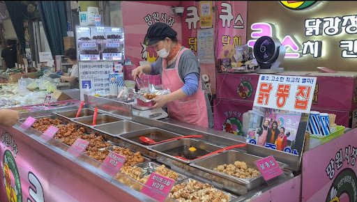 I have read about good food in Mangwon market, and one of it has to be the fried chicken. I was not sure which is the recommended stall but I did see a couple of stalls selling fried chicken and I decided to just try my luck and pick on a random stall. Picked this one with a bright pink signboard with many photos of celebrities taken in a TV program. Looked at the price and it seemed reasonable and allowing mixing of flavours. There were some interesting flavours which were savoury, sweet and spicy. I decided to go safe and not pick those which are too spicy or funky. The lady staff did actually recommend some flavours and I followed my gut feeling. For 13,000 won the portion was quite decent and it allowed me to mix 3 flavours. After paying for it, I didn't have it immediately as I wanted to find a place where I could enjoy the food. Had a try and I found that it was decent but not very good. The chicken was still in some lukewarm state and hence not very crispy, and the sauce was pretty cold. I just wished the chicken could be hotter and then would taste better. Would be better if they don't just cook individually the flavours and prepare the mixing of flavours upon order. Was already quite full before I even finished the entire portion, I didn't like the tteokbokki as I thought it was cold and quite rubbery. Could have done away with that. Can try but not really a place I would...
