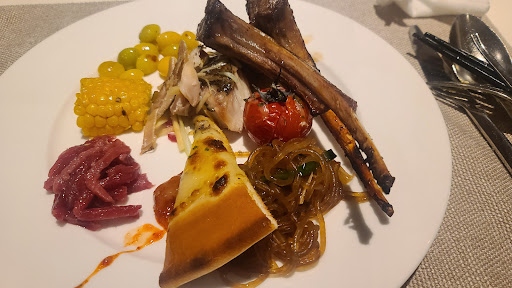 That restaurant has full buffet with top end quality of food. They have great selection of traditional korean food, chinese, and sushi/sashimi. Filet mignon is top quality and lamb chops super tender and juicy. And the desert collection is out of this world! That place is very pricy and not cheap but I would recommend to visit this place just to taste high...