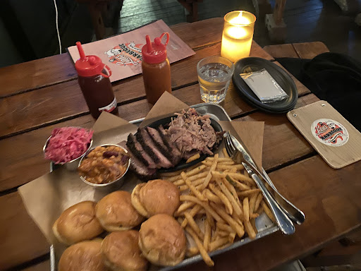 Minus on sauces being in condiment bottles. The meat has to be dipped (also gives the patron the option to smother the food.....which we southern folk do). And in these coronavirus times, the constant picking up of a bottle touched by everybody and their momma is a no-no. Wiping those off with the same rag is also a big NO-NO.