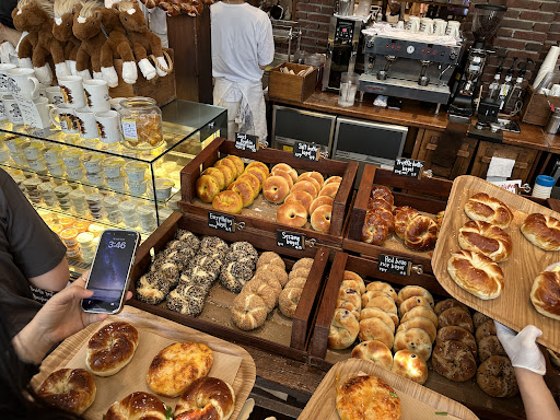 Read moreI luckily only waited about 45 min in the late afternoon on a weekday. I only went to stand in line bc there was a line and I could see the eager faces of those waiting—which made me think—oh this has to be good. When it was my turn to walk into the shop—it was a bit rushed and chaotic. I didn’t get a chance to take it all in as I was rushed forward. So many things caught my attention —the fun artwork—the many bagels that were so pretty I thought they were fake! I ended up choosing 2 bagels—their jambon and butter and another one sesame w a honey dip. Wow—these were the best bagels I have ever had!! The cream cheese was light and creamy yet they didn’t skimp on it. And the bagels—didn’t need to be toasted because they were so fresh and soft and had the right amount texture. I wish they had this in California!! I would’ve gone back again but—the thought of possibly waiting hours in line (because it’s so popular)-made me...