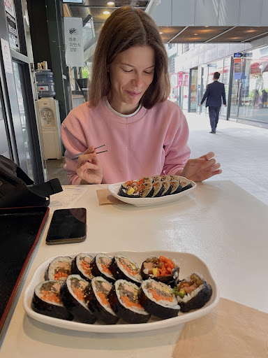The second time we came, we decided to get a bunch of gimbap rolls as we decided to hike up Namsan Park and we needed some food we could bring in our backpacks. It was such a perfect snack for once we got to the top of the mountain!