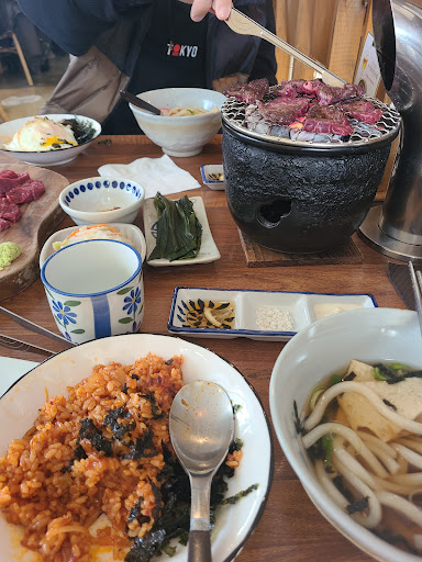 I love this little bbq spot. Randomly stumbled upon it, exploring the alleys. You get your own little personal charcol grill, and then you cook up your meat selection. The best meat is the combination beef or their tenderloin. You also get a seasonal soup. They had a yummy cold soba noodle in the fall. It was fire ๐ฅ but the sides are based per season. So they might not have everything as depicted. The meat is always consistent, though. It's on the pricey side for the area, in my opinion, and the only complaint is that the portion size is small. ๐