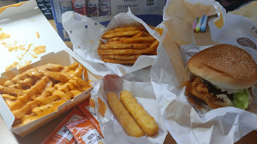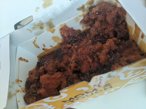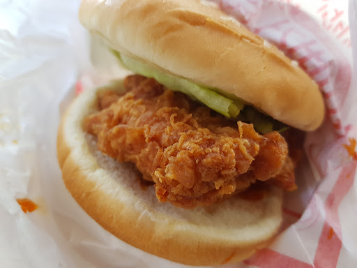 These are very good chicken burgers. Large pieces of thigh meat chicken. Fried crispy, but very juicy. The fries are seasoned and held up well even with a long walk home. The nuggets are, well, just nuggets like you would expect at any chain fast food, so not recommending them. The burger,...