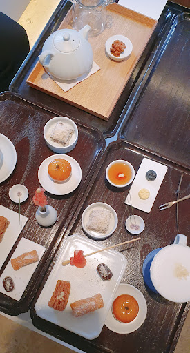 Beautifully-crafted traditional Korean dessert! The owner or staffs carefully explained every piece, what they are. For example, one is made from pine pollen, and another is Omija (Korean berry) candy. Some pieces make us surprise of their flavors after a bite. There’re total 9 desserts in a set. Each set is served with our...