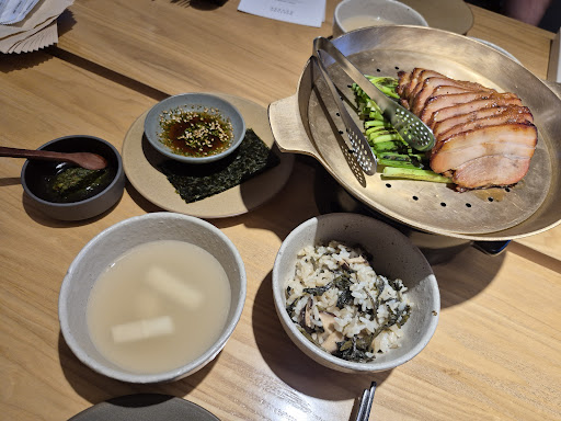 ย ย ย Read moreHad an amazing experience at Mukjung, from the staff, the atmosphere, the food, to even the drinks, everything was on point. The chef, Austin, made sure to explain every single dish to us, including even the side dishes, it really showed his passion for the food and the restaurant. I loved the focus on healthy, fermented dishes, it was my first time trying this type of fermented dining and it was all delicious. We tried so many different dishes and I recommend all of them, but if I had to choose my favorites, it would be the 5-layered Pork belly, Abalone rice, and the shaved ice. The kombucha to start was also great, and I really enjoyed the Ellyeop Pyunjoo (fermented rice wine), it paired along well with all the food. If you are in Seoul, I definitely recommend visiting Mukjung, you...