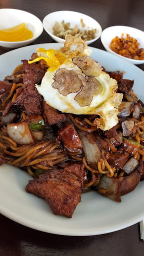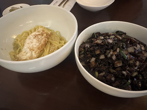 The signature menu item, Steak Truffle Jjajangmyeon, has a strong truffle flavor and is a fantastic combination of Jjajang sauce, noodles, steak, and a fried egg.