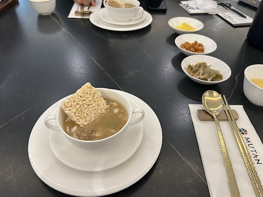Read moreThe soup, a comforting blend of savory broth with tender vegetables and tofu, is elevated by a crispy puffed rice topping, creating a delightful balance of textures. This dish is served at a refined restaurant known for its elegant ambiance and attentive service. The establishment offers a sophisticated dining experience, often featuring a variety of traditional and...