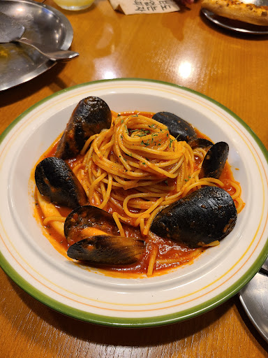 Read moreWe wanted something other than Korean food on our trip, so we were happy to find this place. It's located in the 4th floor of a building. The restaurant was very nice and clean. You order off a tablet on the table and our food got to us very quickly. We ordered the half/ half pizza and spicy seafood tomato pasta. For the pizza we got half cheese and pepperoni. The pizzas are personal sized, 6 slices a pie, so if you are hungry, order your own. The seafood pasta which was delicious. It had mussels, tiny shrimp, and calamari. You choose 3 levels of spice; not spicy, spicy, and very spicy. I got the spicy and it was very spicy (and I eat a lot of spicy food). I wondered what the very spicy was like. Lol. All in all with 1 pizza, pasta, and 3 drinks for 2 adults and 2 kids came out to $38.66 (or about $49,000 won). We would...