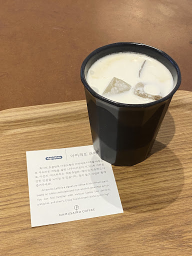 Namusairo in Korean (แแ กแแ ฎแแ กแแ ตแ แ ฉ) means "between the trees", a mention to the song "Path" by Kim Hwal-seong which inspired owner and coffee expert Jun Sun-bae.